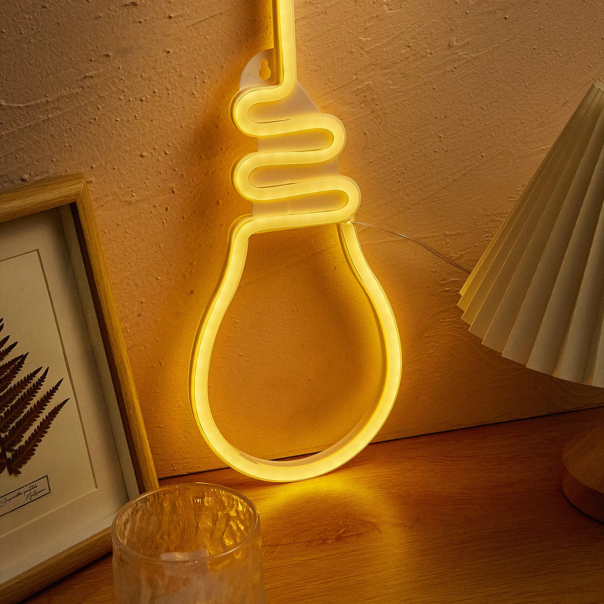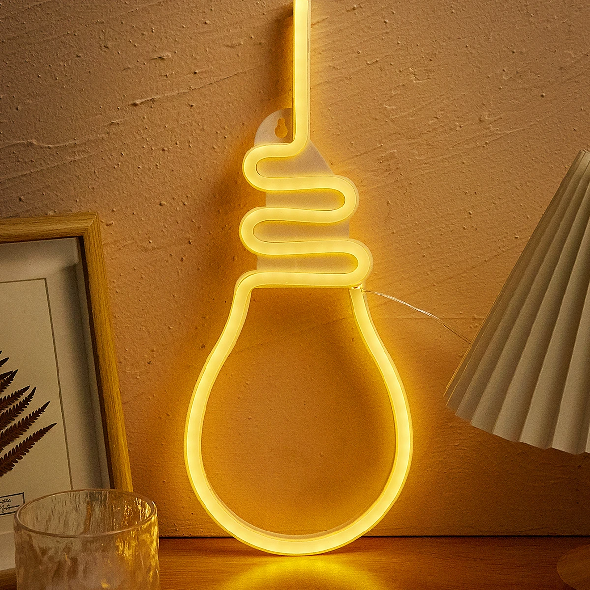 Chi-buy LED neon sign Chi-buy Lamp BulbLED Neonsign USB Powered Or Battery Power Supply Neon Signs Night Light For Bedroom Living Room Decor Lamp Signs are bent into shapes by high-quality LED light strips. It emits a brilliant light at night, adding an artistic Art to your environment. The CHI-BUY Chi-buy Lamp BulbLED Neonsign USB Powered Or Battery Power Supply Neon Signs Night Light For Bedroom Living Room Decor Lamp Signs neon signs is powered by a 5V USB or 3X1.5V AA Battery, You can turn on the LED neon sign anytime and anywhere, use mobile phone charger, or a computer USB port. The hanging hole design on the cute colorful Chi-buy Lamp BulbLED Neonsign USB Powered Or Battery Power Supply Neon Signs Night Light For Bedroom Living Room Decor Lamp Signs night light is very easy to hang. It is the perfect decoration for your bedroom, room, living room, office and shop walls. The LED neon lamp lighting soft and not dazzling, it is very suitable for use as a night light. The unique shape and exquisite gift design are perfect gifts for your family, friends, girl friends, kids, children, girls on Christmas, Valentine's Day, New Year, birthday, wedding, party and other holidays.